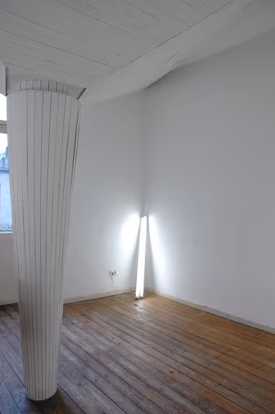 Volumen aus weißgestrichenen Sperrholzleisten 332cm x 356cm x 459cmmintrop, Ausstellungsraum, Düsseldorf