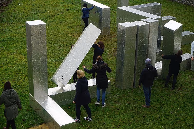 barc was developed for the art collection of the federal state of North Rhine-Westphalia in the Kunsthaus Kornelimünster. 25 cubes coated with aluminium form a modular system that is constantly changing. In addition to being displayed at various places in the former imperial abbey of Kornelimünster, the work was shown in the Mannesmann highrise in Düsseldorf.