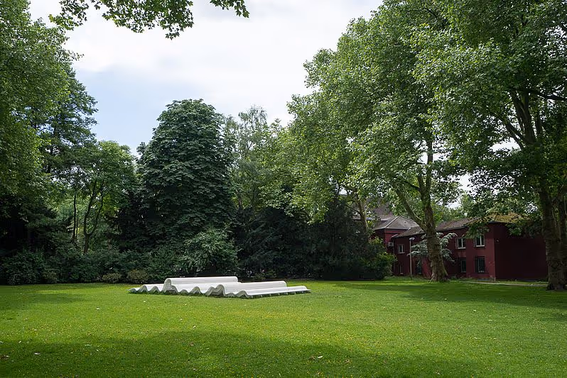 The public space is commandeered by onda as a white platform reminiscent of a park bench. onda invites oneto stay awhile and thus becomes a social sculpture.